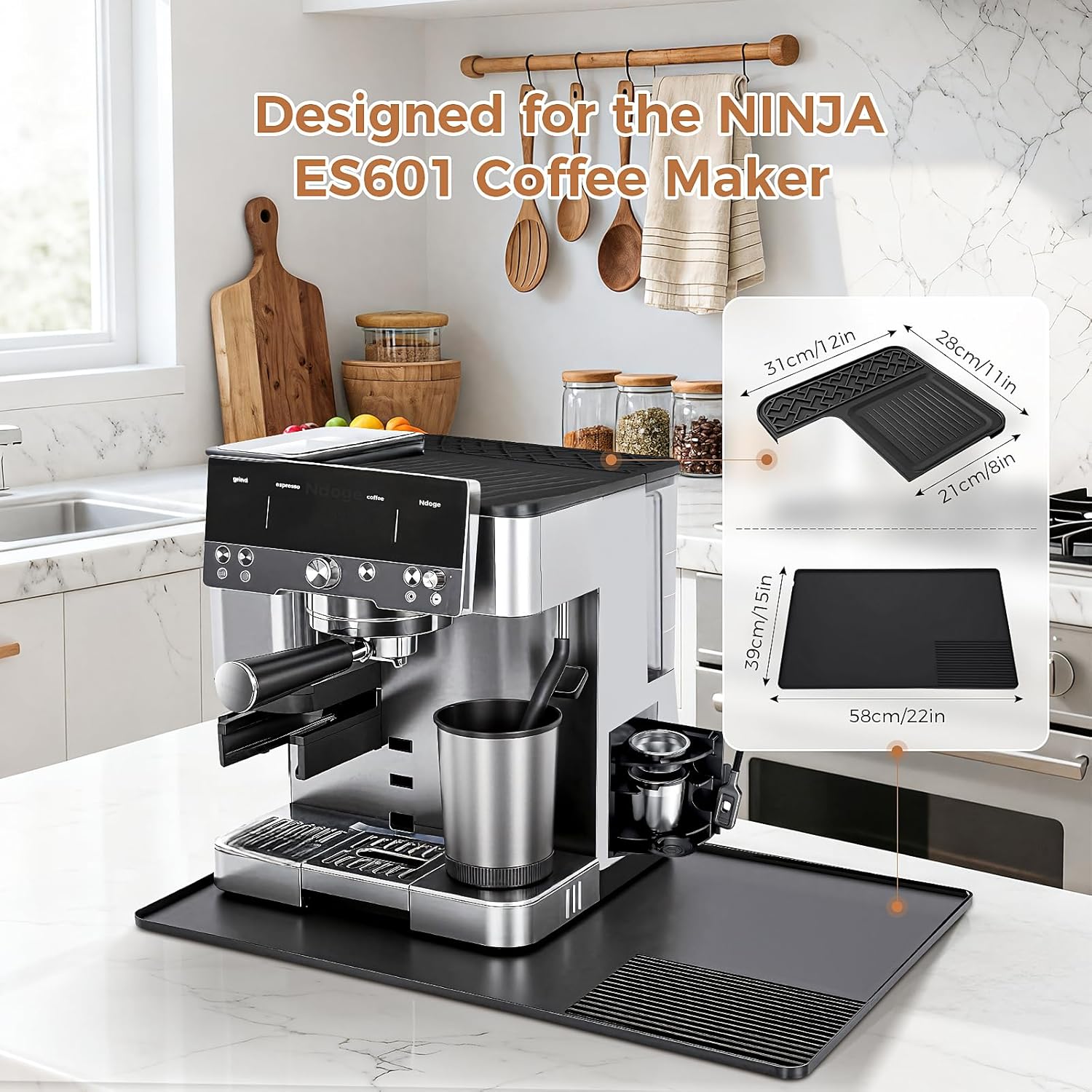- Ajuste para Ninja ES601: Diseñado para complementar con la cafetera Ninja ES601, no cubre la apertura del molinillo, asegurando una funcionalidad completa y una apariencia perfecta. La almohadilla deslizante se alinea perfectamente con la base de la cafetera ES601, evitando que tu cafetera se deslice o se mueva fuera de lugar.