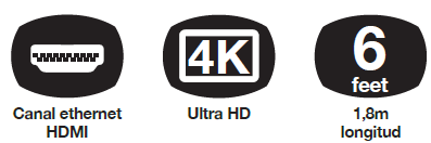Funciona con la última generación de reproductores de video, consolas de juegos HD, proyectores, pantallas LED, LCD, plasma y 3D.