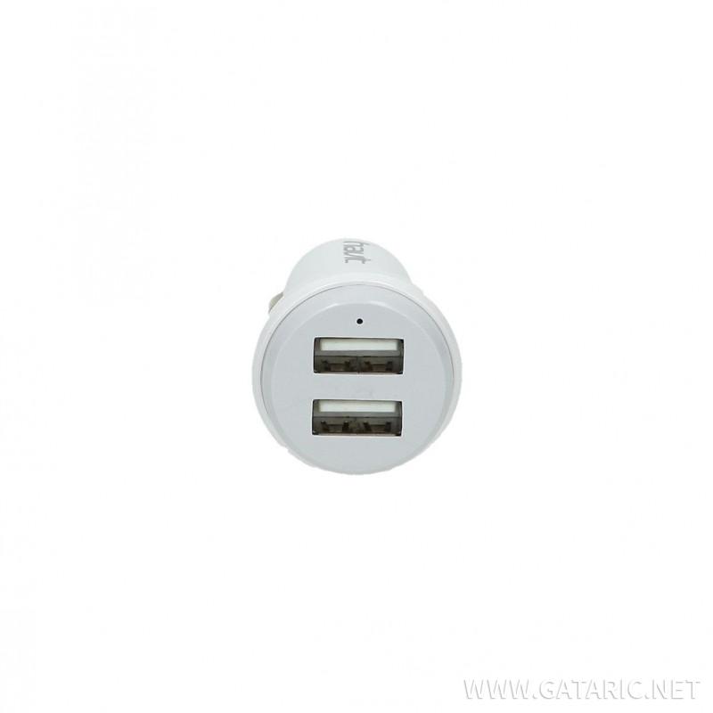 Permite cargar dos dispositivos al mismo tiempo gracias a sus dos puertos de carga 2,4 A. Cuenta con una luz LED azul para indicar que está bien enchufado. Se adapta automáticamente a la corriente de entrada de los dispositivos y maximiza la velocidad de carga, ajustando el voltaje recibido del vehículo para que el dispositivo cargue a una velocidad constante. Su diseño de circuitos evita el sobrecalentamiento, sobre intensidad de corriente y exceso de carga.