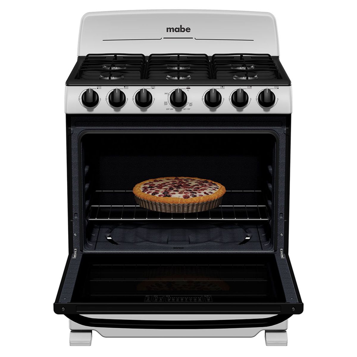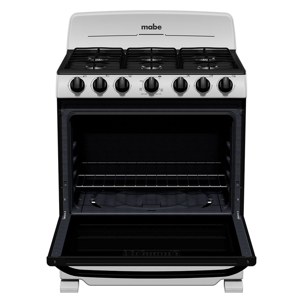 Cocina Mabe Gas 30″ 6Q Tech Estándar Negro encendido Manual Tecnología Perfect Cook easy clean pro EM7622BAPS2