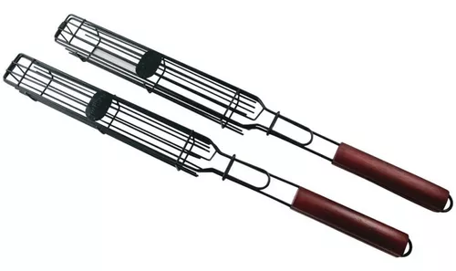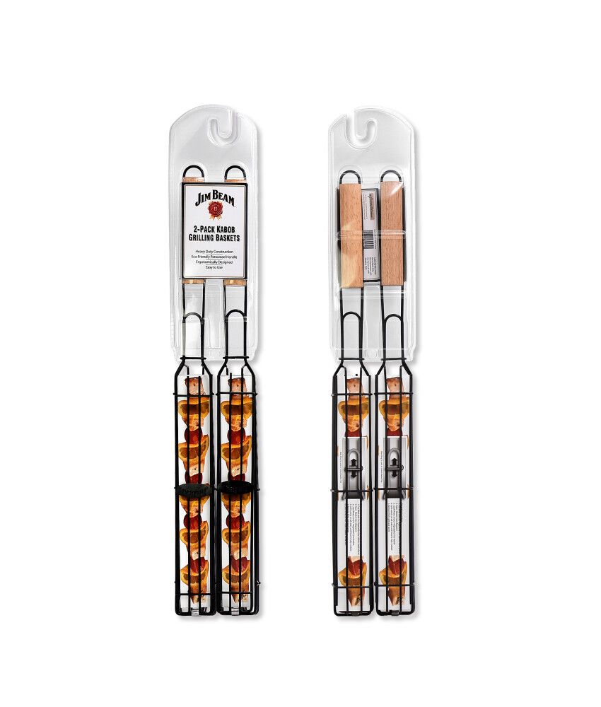 Cestas para asar brochetas; resistentes al calor y duraderas; fáciles de limpiar y almacenar; empaque con 2 unidades. Prepara deliciosas brochetas de dos en dos para los amigos o la familia. UPC: