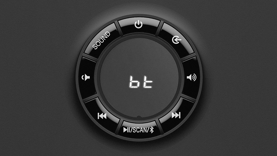 - Subwoofer con cable de alimentación fijo y antena de radio FM