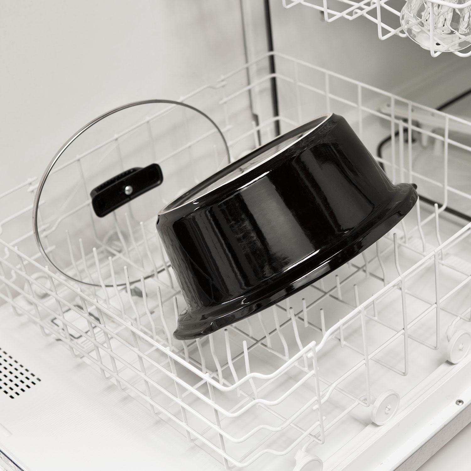 La vasija de gres extraíble y la tapa de vidrio son aptas para lavavajillas, lo que facilita la limpieza.