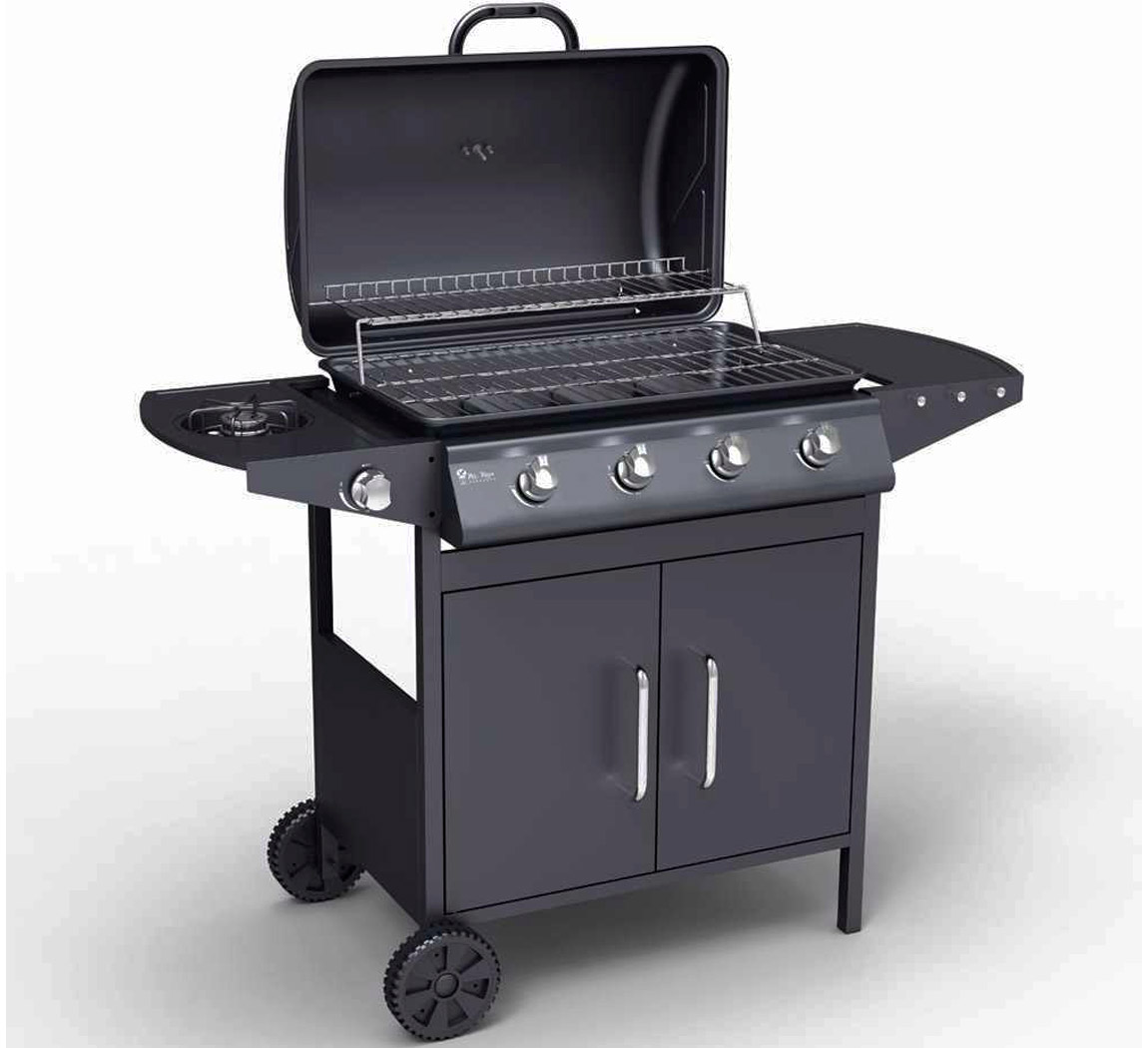 Una parrilla cómoda con 5 quemadores, su diseño es totalmente elegante y su material es resistente en acero inoxidable