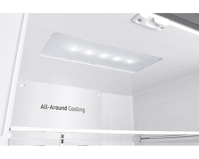 Todos tus alimentos se mantendrán muy frescos, en cualquier compartimento del refrigerador. El sistema All-around Cooling comprueba continuamente la temperatura y expulsa aire frío. Así, el refrigerador se enfría de manera uniforme de esquina a esquina, por lo que cada alimento permanece fresco por más tiempo.