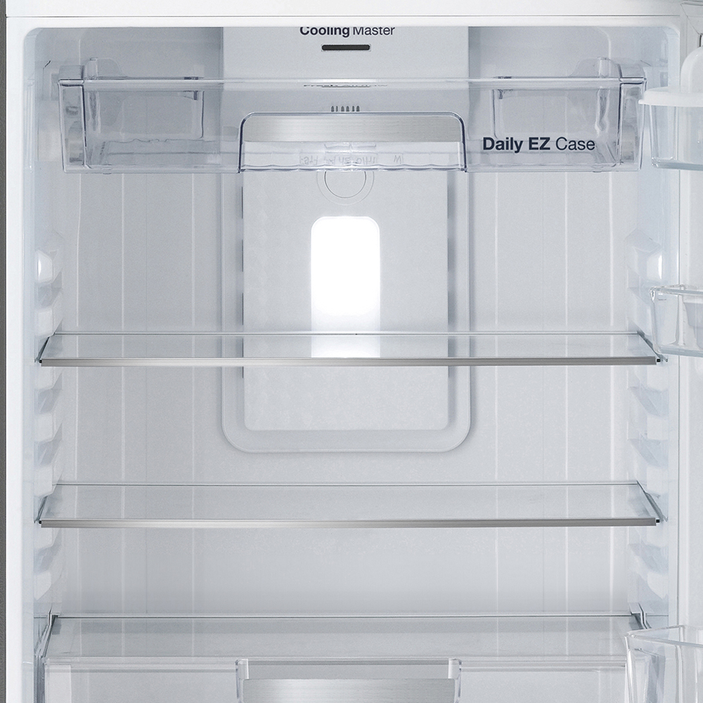 Refrigerador PR-1821DGF color Glam Silver de 364 litros con práctico dispensador de agua de 3 litros removible de fácil limpieza, sistema de torre de enfriamiento Cooling Master, iluminación tipo LED, y bandejas de vidrio templado con resistencia de hasta 100Kg.