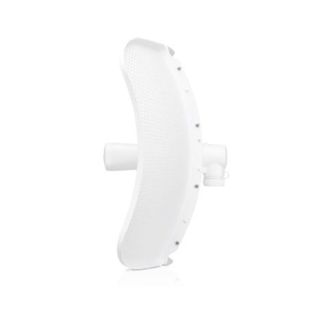 El LiteBeam ® AC LR proporciona 26 dBi de ganancia para conectividad de larga distancia y utiliza un patrón de antena direccional para mejorar la inmunidad al ruido.