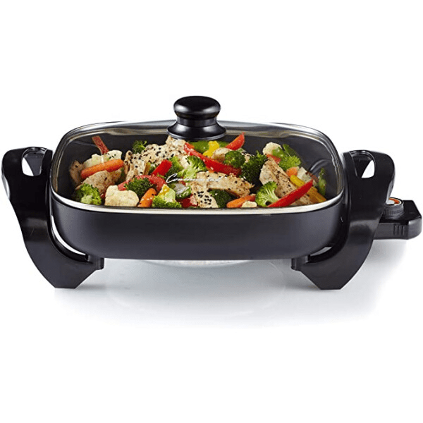 • Sartén eléctrica grande de 12.0″ para cocinar y servir como una bandeja de buffet caliente