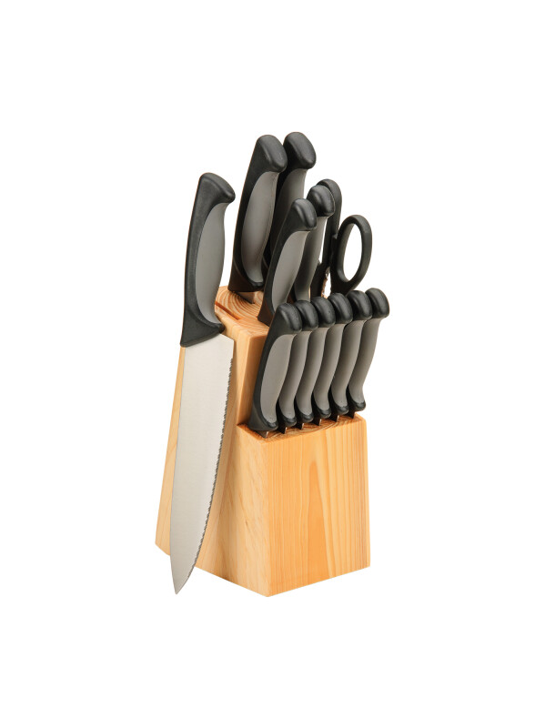 Set de cuchillos PDA603 Proctor Silex de 13 piezas. Poseen mango suave de 2 tonos y soporte de madera para su almacenaje. Este es el juego de 13 cubiertos para el uso diario ideal para su cocina. Incluye 11 cuchillos y unas tijeras con un soporte de madera para guardarlos cómodamente.