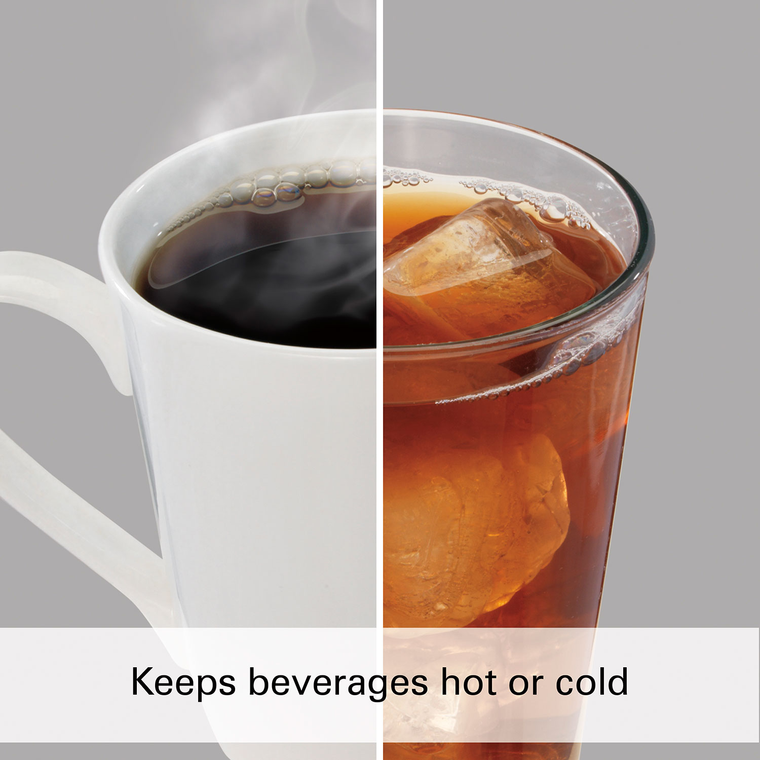 Mantenga las bebidas calientes calientes y las bebidas frías frías con el Proctor Silex Airpot, perfecto para eventos deportivos al aire libre, reuniones familiares y otras ocasiones que atraigan a una multitud. Simplemente llene el depósito de aire con la bebida que prefiera, coloque la taza debajo de la boquilla y presione el botón dispensador en la parte superior. El interior aislado al vacío mantendrá bebidas, como café, chocolate caliente y té helado, calientes o frías durante horas, para que pueda disfrutarlas a la temperatura perfecta. Y dado que el interior está hecho de un acero inoxidable irrompible y no poroso, el sabor de su bebida no se verá afectado.